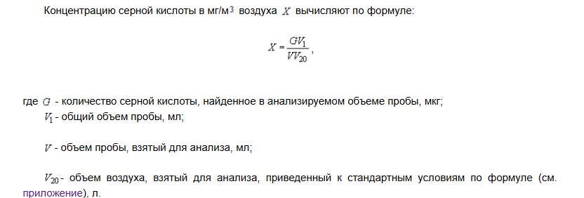 Маша Вы колориметром измеряете содержание серной кислоты в пробе, затем по считаете концентрацию ее паров в кубе воздуха по формуле: