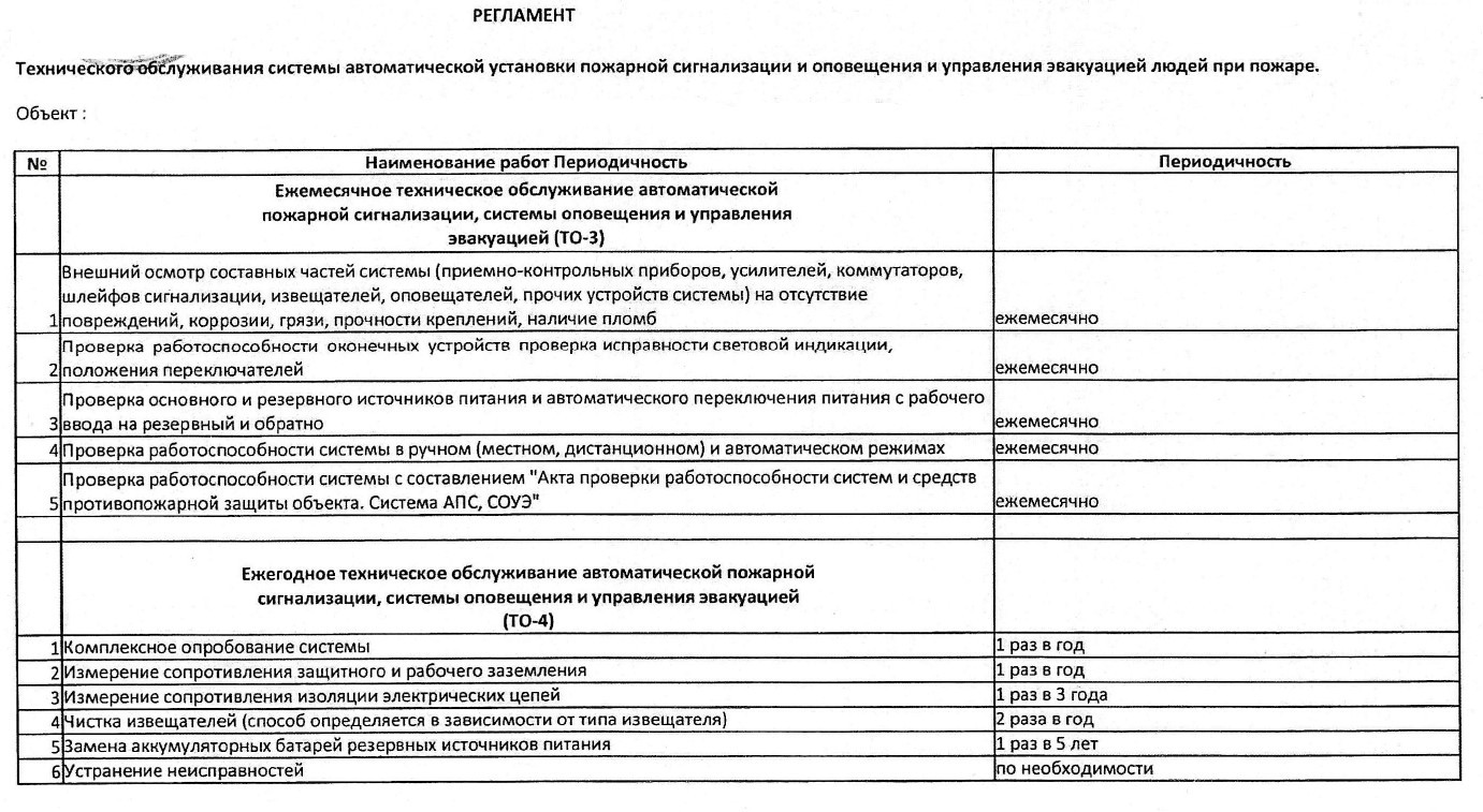 Коллеги, добрый день! Поделитесь пожалуйста Регламентом технического обслуживания АПС.