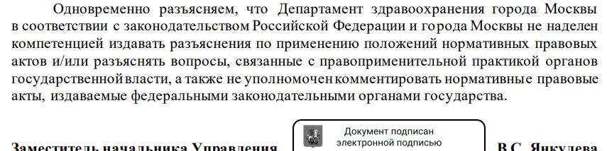 Я написал письмо в департамент здравоохранения Москвы и попросил разъяснить приказ Минздрава. А в департаменте здравоохранения сказали "не имеем компетенции комментировать приказы Минздрава"