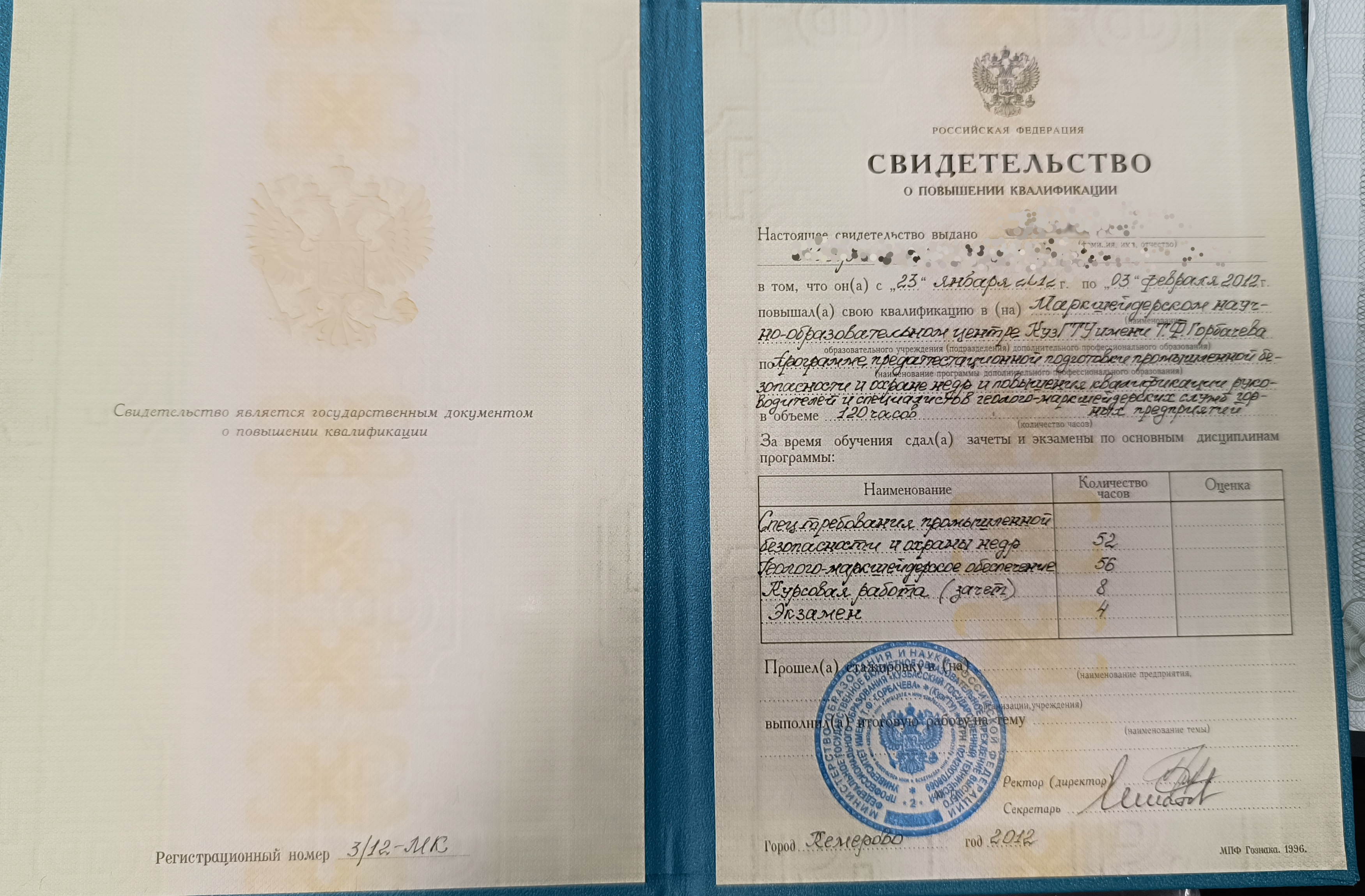 Повышение квалификации перед аттестацией в Ростехнадзоре. Даже курсовая работа была