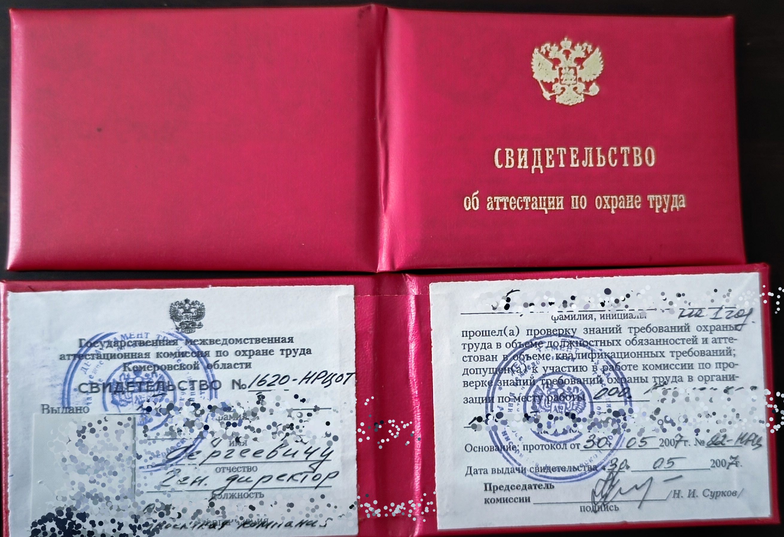 Свидетельство об аттестации по охране труда - видимо, изобретение какого-то учебного центра? Или было такое? Я не в теме.