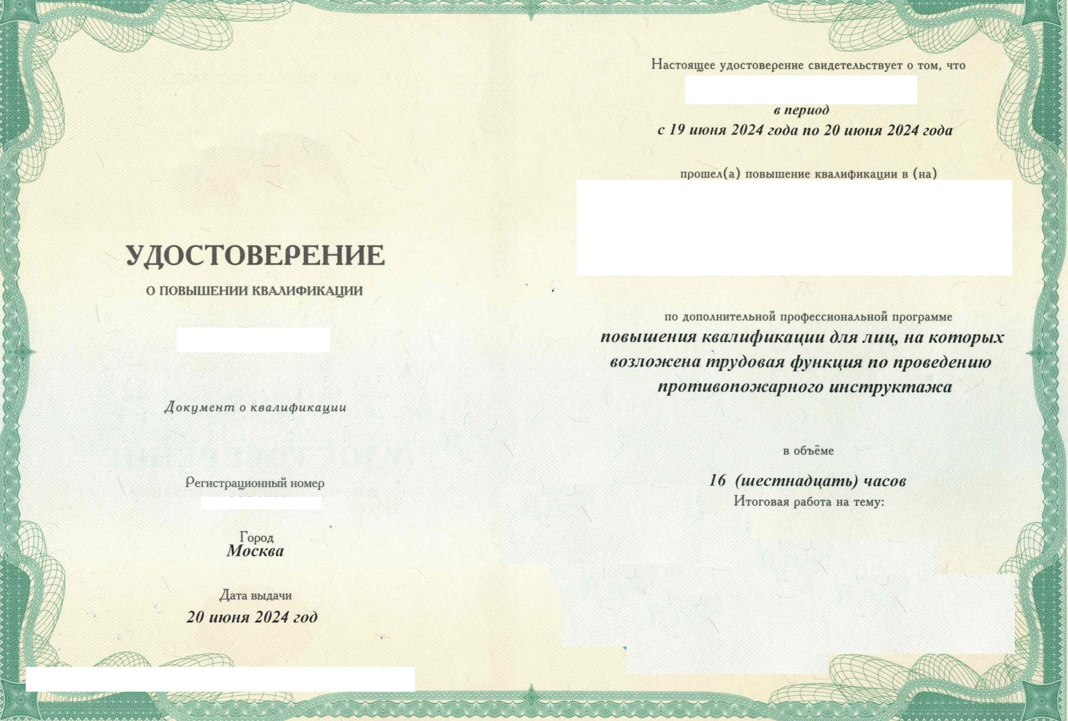 пройти обучение мерам пожарной безопасности по одной из дополнительных профессиональных программ - программ повышения квалификации при наличии компетенций в области пожарной безопасности, приобретенных в период получения среднего профессионального образования и (или) высшего образования (имеющие документы, подтверждающие прохождение лицом обучения по учебному предмету (курсу, дисциплине, модулю), связанному с обеспечением пожарной безопасности).