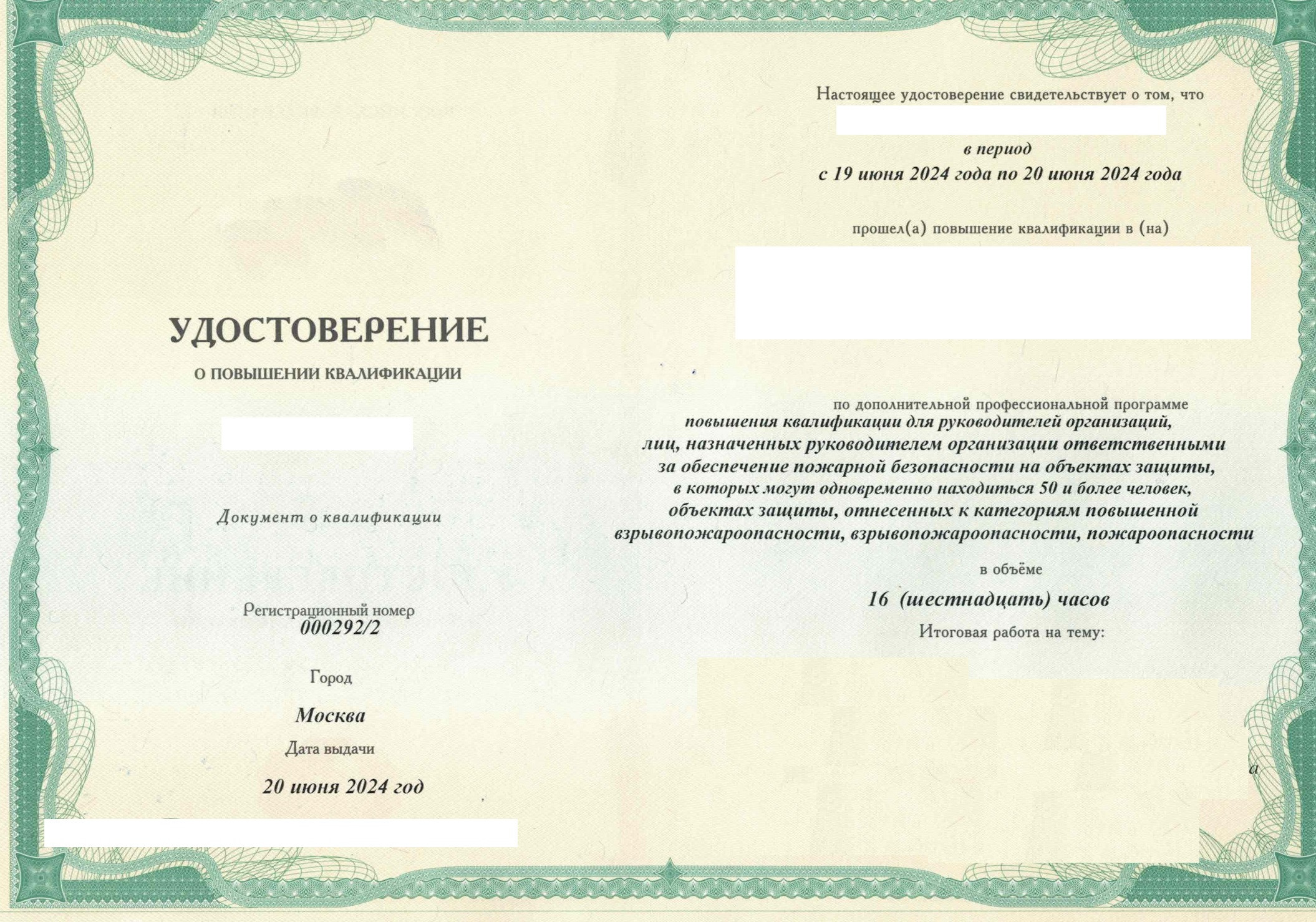 пройти обучение мерам пожарной безопасности по дополнительной профессиональной программе - программе переподготовки в области пожарной безопасности;