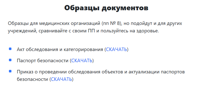 Поделитесь пожалуйста чек-листом по антитеррору в медицинских учреждениях. Какие организационно-распорядительные документы должны быть?