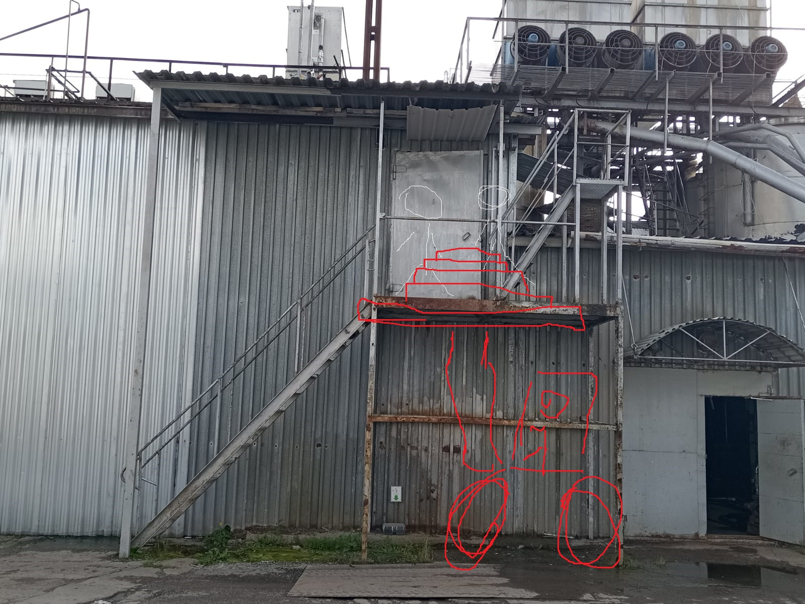 Ситуация следующая: есть аварийная наружная лестница (не пожарная и не эвакуационная), которая ведет в помещение водоочистки и на крышу.