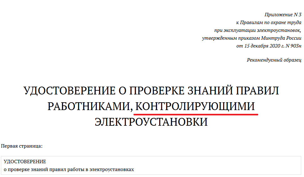 Дальше в образце есть подозрительная фраза "Допущен к инспектированию электроустановок напряжением ____".